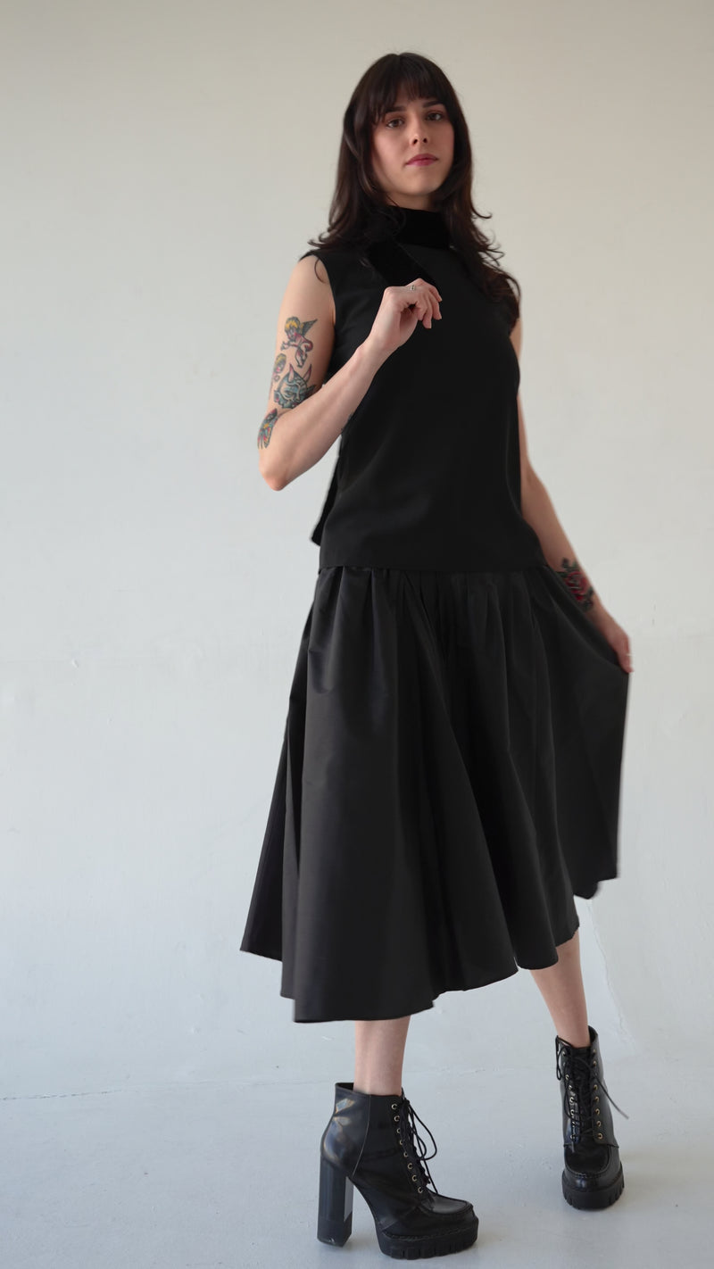A sleeveless tank top made of soft wool features a refined velvet neck bow collar, combining warmth and elegance.